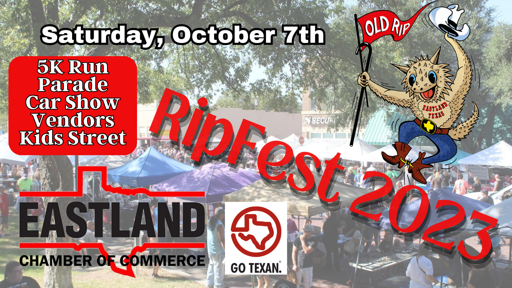 Online Vendor Booth Registration is now open for RipFest 2023. If you have any questions, please feel free to call the Eastland Chamber of Commerce at 254-629-2332 or email chamber@eastland.net.