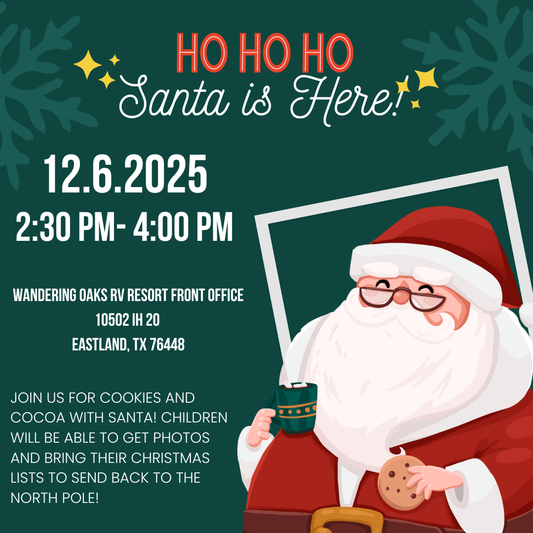 Santa Arriving at Wandering Oaks RV Resort Saturday