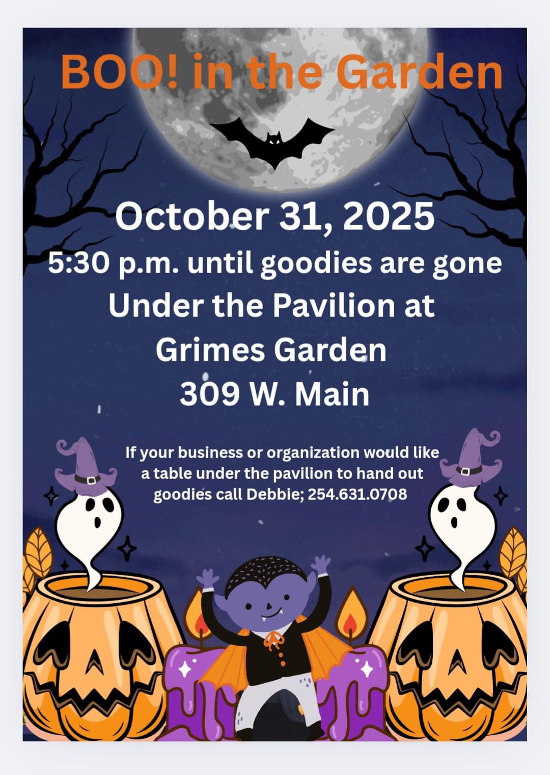 If your business or organization would like a table to hand out goodies under the pavilion, call Debbie 254-631-0708